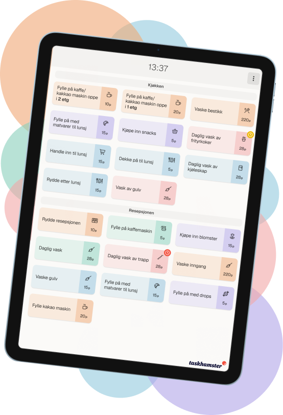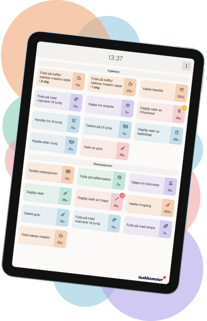 Taskhamster gjør det enkelt å holde oversikt over alt som skal gjøres. Oppgavene samles på ett sted, og alle ser tydelig hva de skal gjøre og når det skal gjøres. Det gir mindre mas og mer flyt i hverdagen.